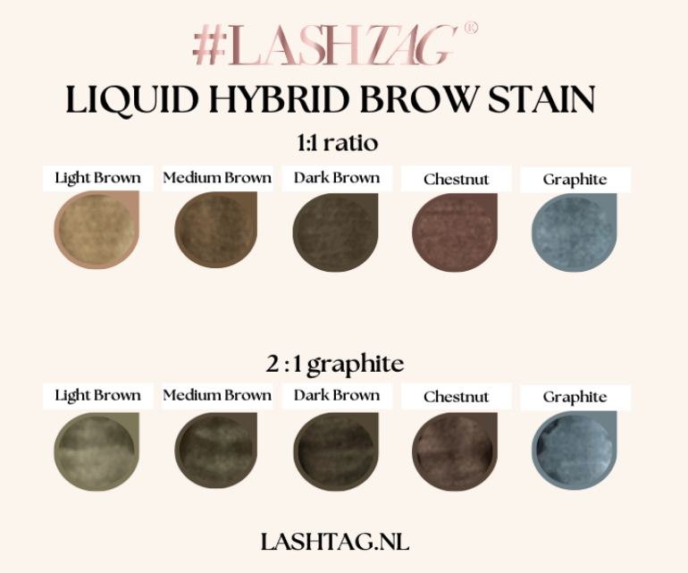 • De LASHTAG Liquid Hybrid Brow Stain lijn biedt de nieuwste innovatie in professionele wenkbrauwverf, waarbij het de voordelen van zowel henna als reguliere verf combineert. Dit resulteert in langdurige, intense kleuring zoals bij henna, maar met een kortere verwerkingstijd voor efficiënter gebruik.
