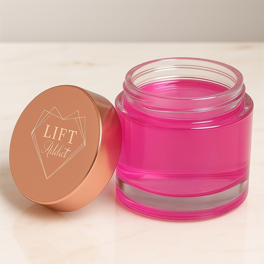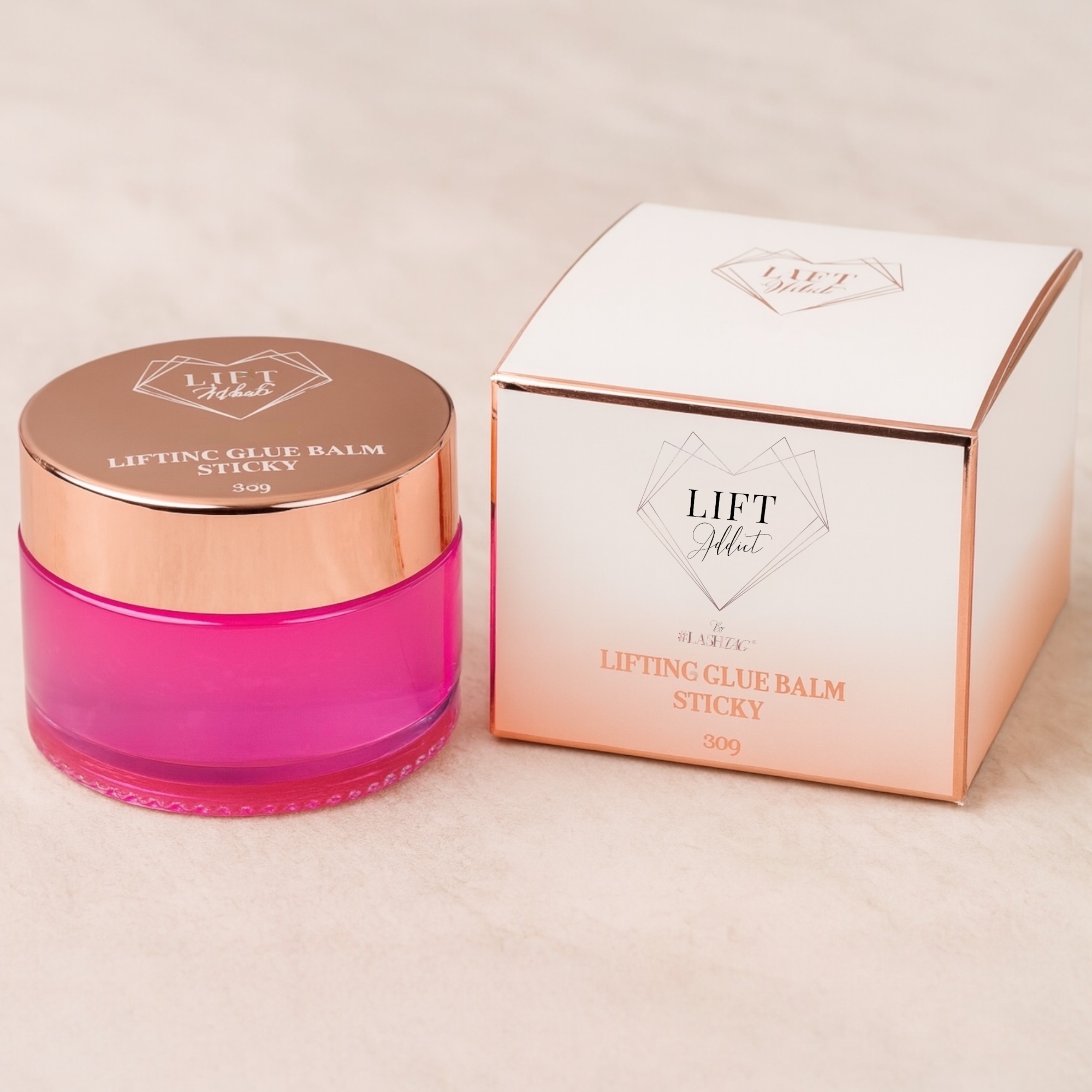 Lift Addict | Attachment - Lifting Glue Balm Sticky in a pretty glass jar in a bright pink translucent colour & has a lovely peachy scent 🍑!