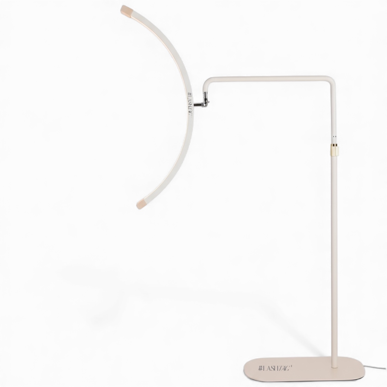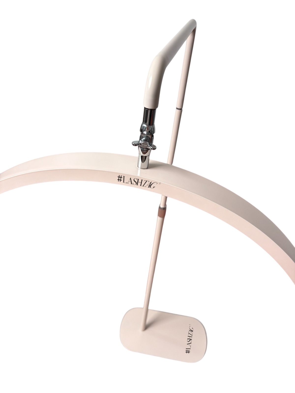 Latest design in salon lighting, now available exclusively at LASHTAG. You can rotate this lamp 360º degrees around your client. You can rotate this lamp 360º degrees around your client. It can also be tilted just above the lamp, so you can also shine it to the side! How easy! Can be easily set to cold/medium/hot light and you can easily adjust the brightness. With touch buttons & includes mobile phone holder.