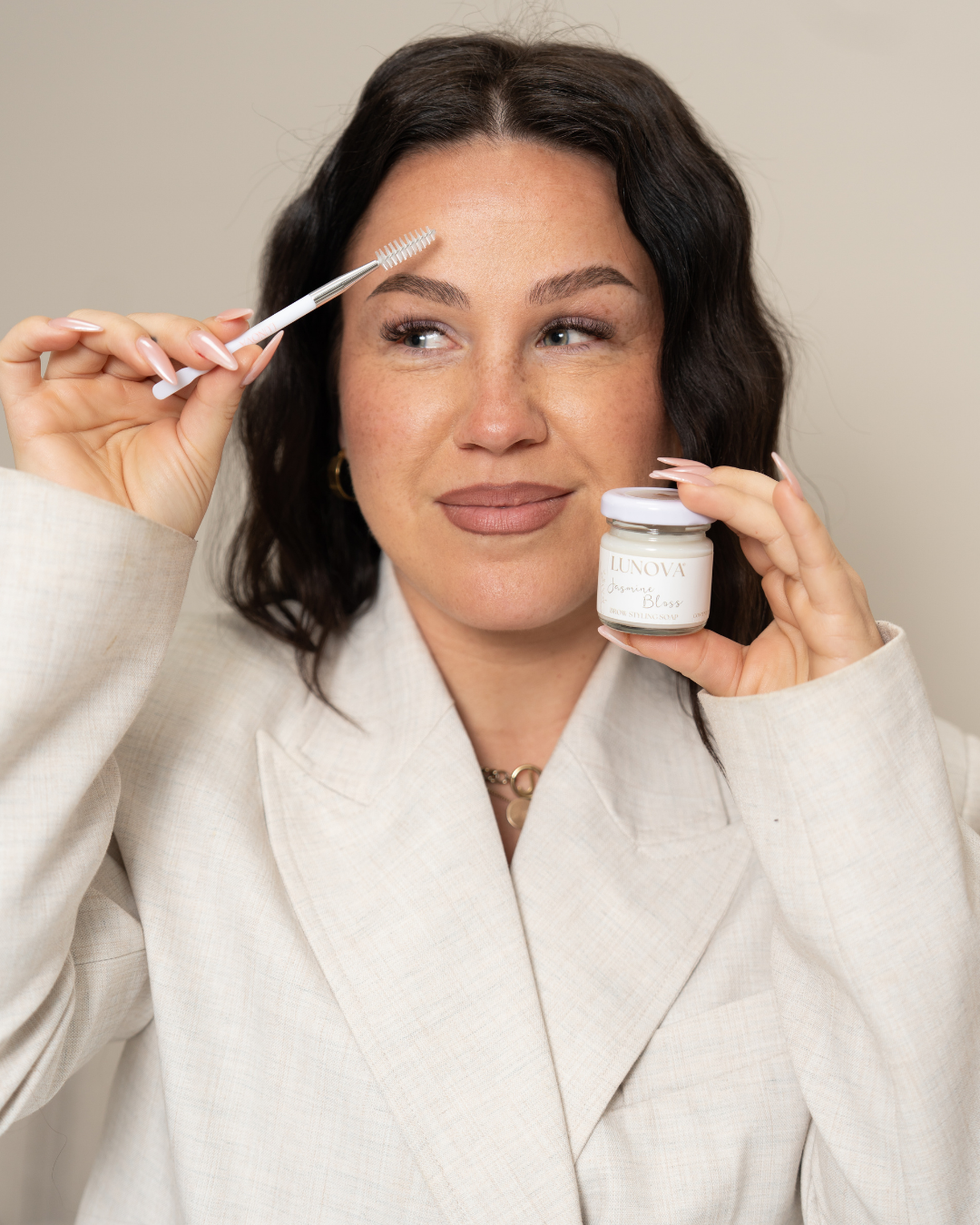 een té leuk glazen potje met wit dekseltje, waarbij je de wenkbrauwen super makkelijk in shape kan brengen. Enige wat je moet doen, is je brush of spateltje in het potje dippen om vervolgens aan te brengen op de wenkbrauwen. Breng aan op je brows en kam ze in de gewenste richting. Een must have op jouw make up tafel! Super hygiënisch op te bergen & mee te nemen!